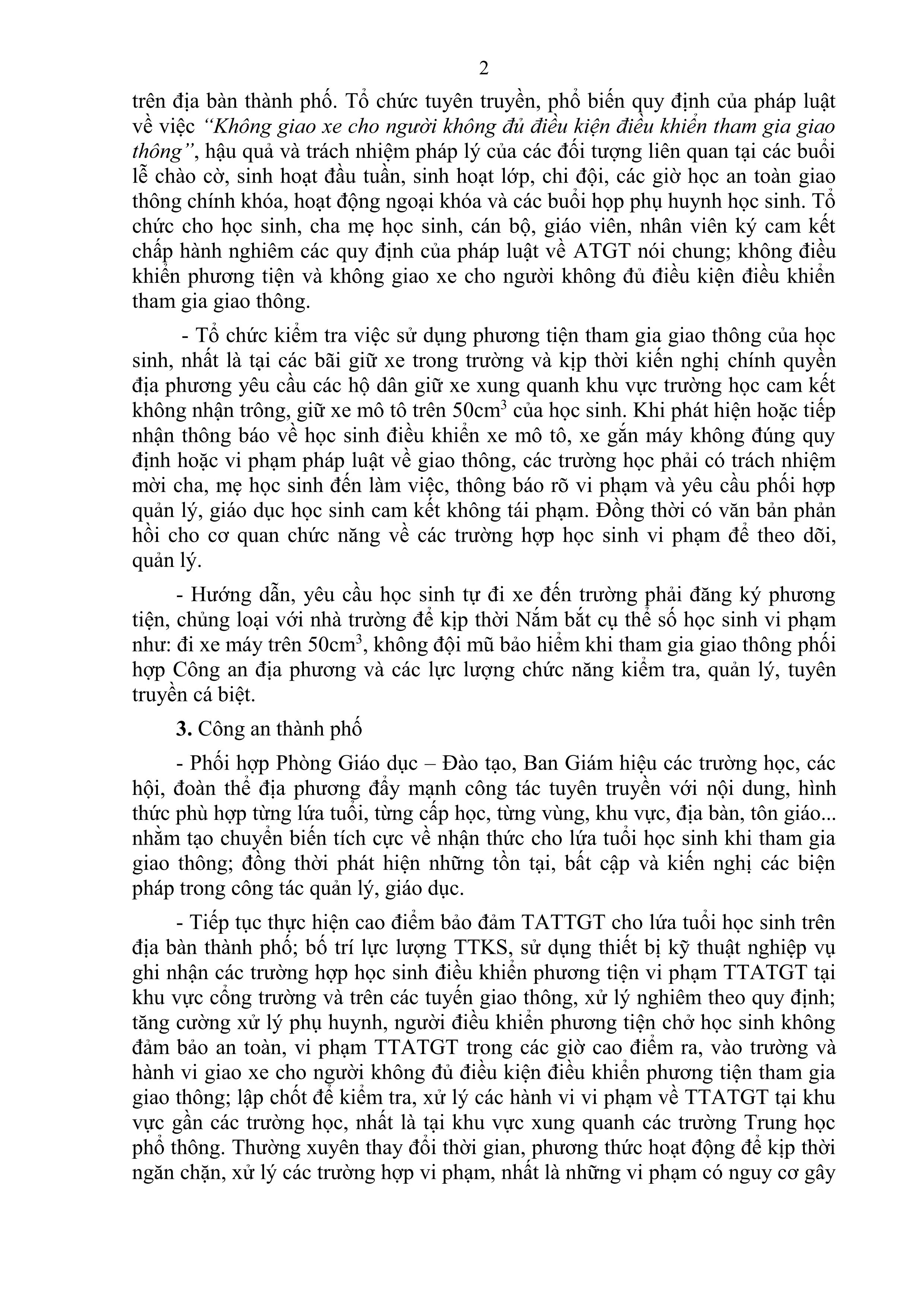 | Tăng cường xử lý tình trạng học sinh chưa đủ tuổi điều khiển xe máy trên 50 phân khối trên địa bàn thành phố |