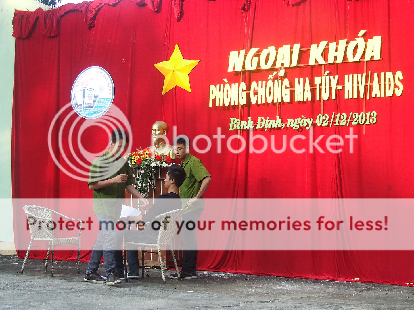 Sáng ngày 02-12-2013, được sự cho phép của Sở GD và ĐT Bình Định, Đảng ủy, BGH nhà trường. Đoàn trường Quốc Học Quy Nhơn long trọng tổ chức Hội thi "Học sinh Quốc Học Quy Nhơn chung tay phòng chống Ma tuý, HIV/AIDS”. Thông qua Hội thi nhằm tuyên truyền cho học sinh hiểu biết về ma túy, HIV/AIDS, cũng như những tác hại của ma túy, HIV/AIDS đối với sức khỏe bản thân, gia đình và xã hội; hiểu biết sâu rộng về Luật Phòng chống HIV/AIDS, sự nguy hiểm của AIDS và cách tham gia phòng chống lây nhiễm nhằm bảo vệ bản thân và những người xung quanh; hiểu, chia sẽ và không kỳ thị với người nhiễm HIV, giúp đỡ, hướng dẫn để họ có thể hoà nhập với cộng đồng; thông qua Hội thi, nâng cao năng lực cho đội ngũ cán bộ đoàn viên, thanh niên, học sinh, trong việc tuyên truyền, vận động phòng chống Ma tuý, HIV/AIDS trong trường học; xác định vai trò xung kích của học sinh trong phòng chống Ma tuý, HIV/AIDS. Một số hình ảnh tại Hội thi: Thành phần khách mời, Ban giám khảo, cùng toàn thể các thầy cô giáo Mở đầu là tiểu phẩm: "Cậu ấm" của chi đoàn 11A7