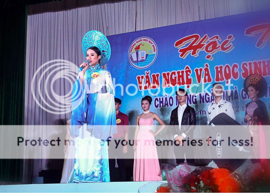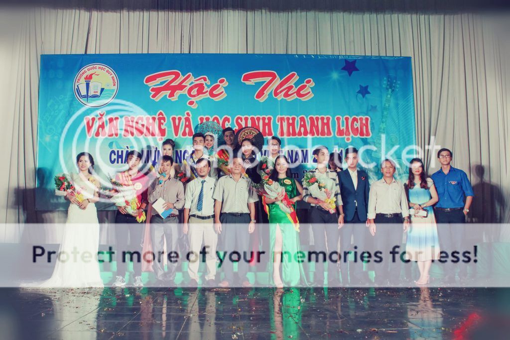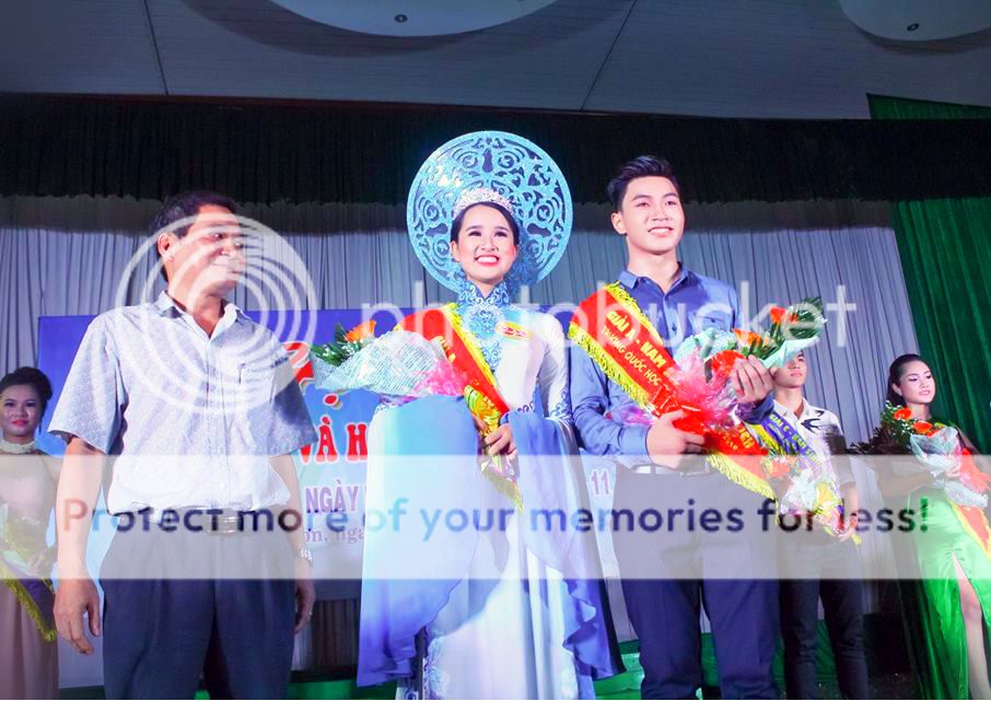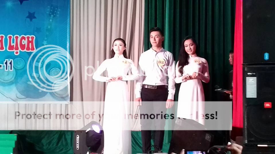 Phần thi ứng xử của Hoàng Linh - cô gái đến từ lớp 11A2 - Ảnh: CLB Nghệ Thuật Với câu trả lời đầy sức thuyết phục cho câu hỏi: “Em nghĩ gì về câu nói “Sống là cho đâu chỉ nhận riêng mình”?”. Thí sinh Huỳnh Văn Cường đến từ lớp 11A2 đã xuất sắc trở thành “Nam vương thanh lịch” năm 2016! Và danh hiệu “Nữ vương thanh lịch” được trao cho thí sinh Nguyễn Vũ Hoàng Linh đến từ lớp 11A2. Đây quả là năm thắng lớn của 11A2 khi cả hai danh hiệu cao quý đều “lọt” vào tay họ.